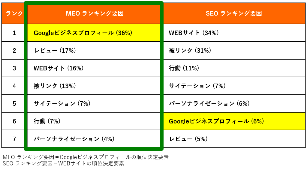 そして、SEO対策における自然検索(オーガニック検索)のランキング要因とMEO対策におけるローカルパックのランキング要因に注目すると、実はMEO対策もSEO対策もランキング要因は共通しており、互いに影響しあって順位が決定していると考えられるため、どちらかを強化するのではなく、WEBサイト(公式サイト)とGoogleビジネスプロフィールを合わせた対策が理想的です。